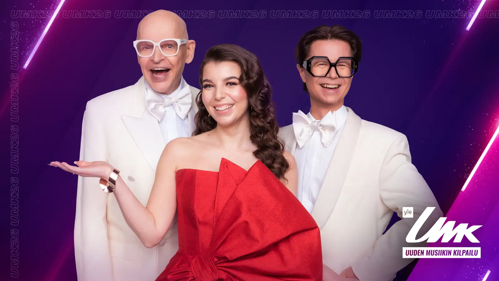 Uotisen rinnalla UMK-juontajina tänä vuonna nähdään Sami Sykkö ja Jasmin Beloued.