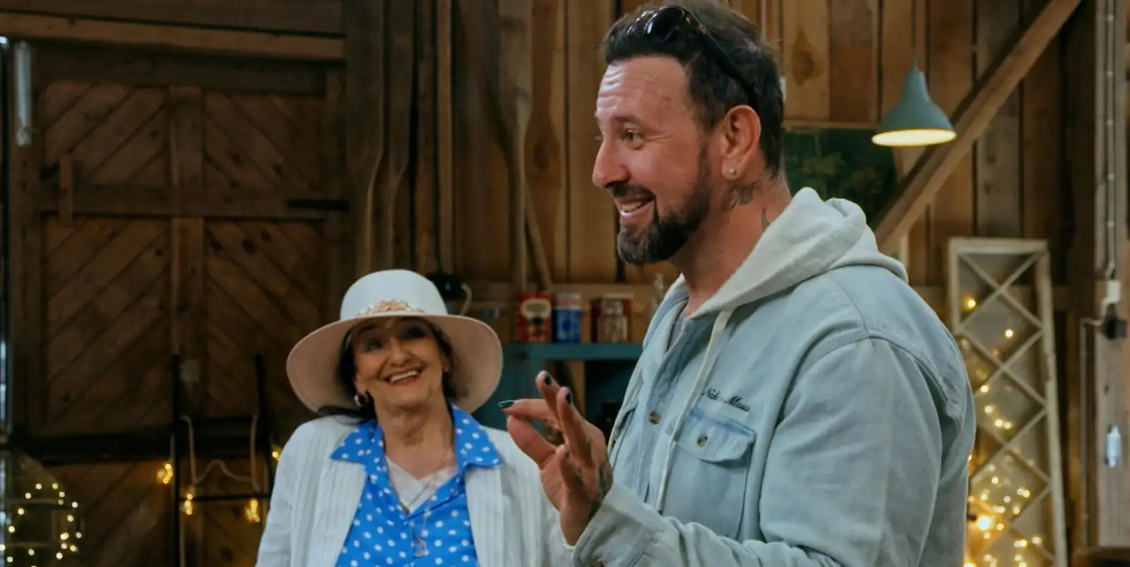 Esko Eerikäinen ja äiti MTV3:n Aarrepaja-ohjelmassa. Kuva: MTV3