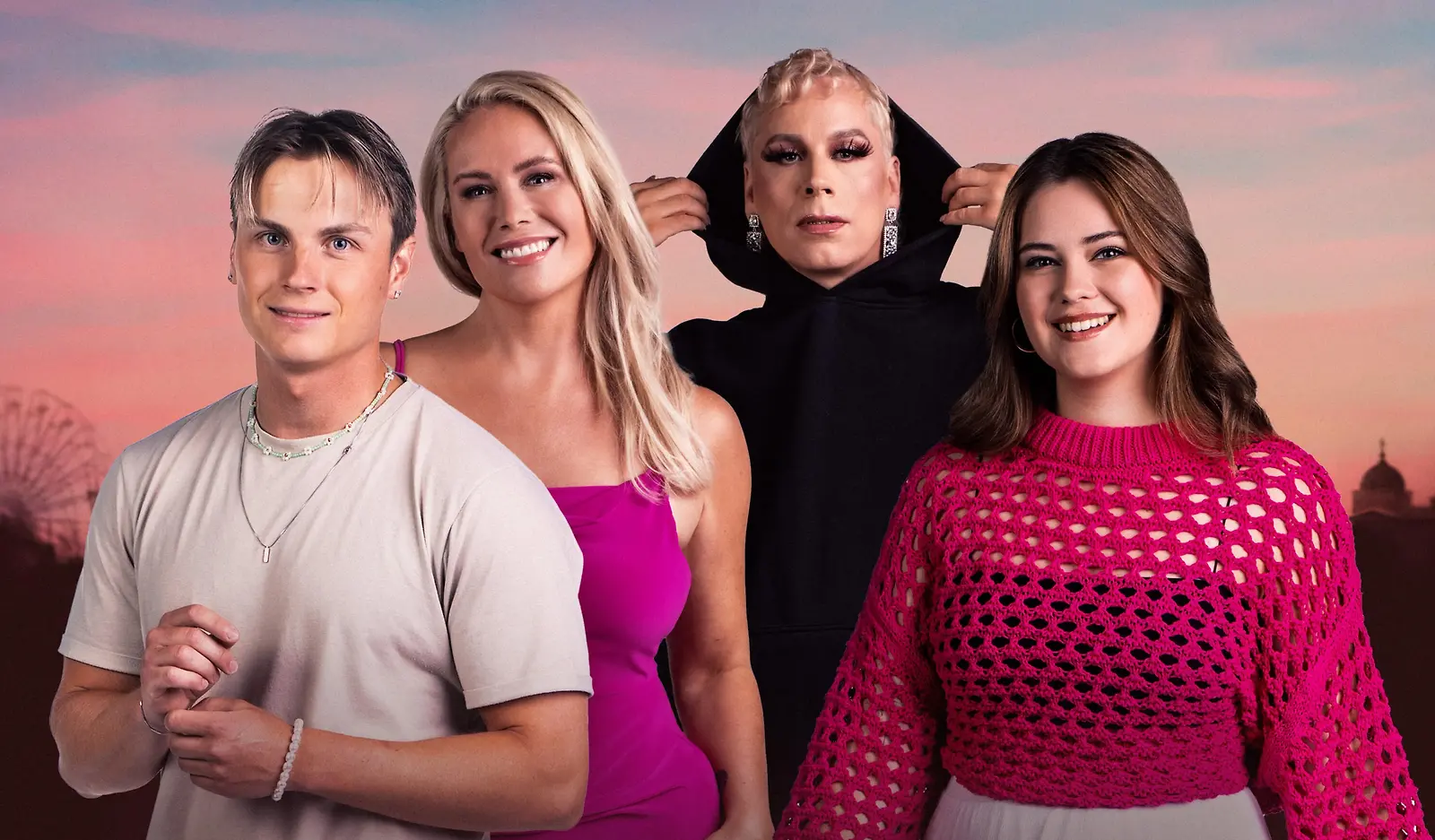 Mikael Sundberg, Anne Kukkohovi, Cristal Snow ja Emma Nopanen päättävät antautua rakkaudelle Sometähtien sinkkuelämää -ohjelmassa. Kuva: MTV