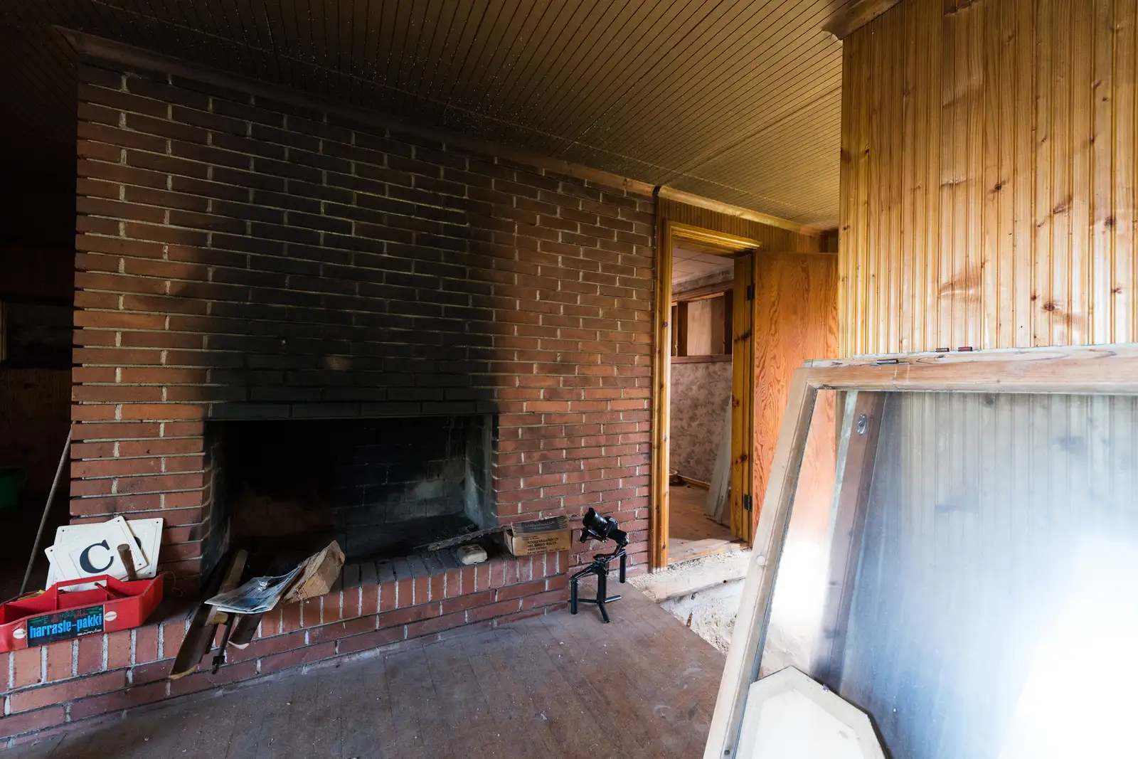 Takka oli hieman savuttanut. Seinässä hyvin säilyneet sormipaneelit. Kuva: MTV3