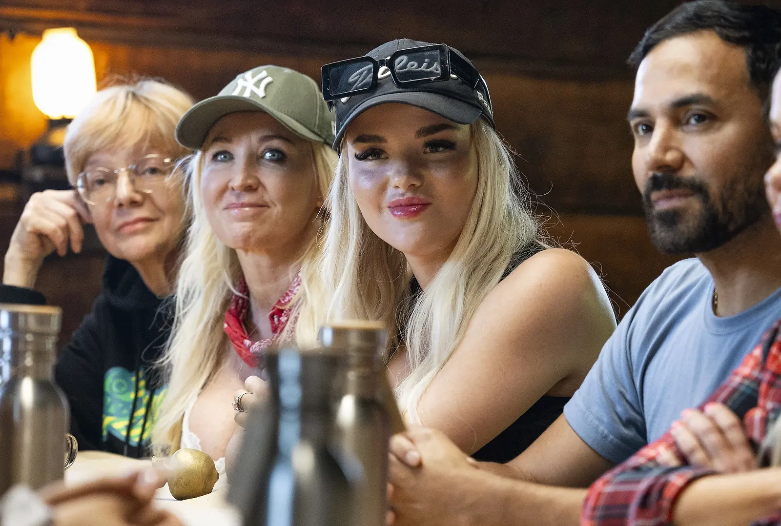 Raija Pelli, Susanna Penttilä, Iida Vainio ja Antonio Flores tuvassa pitkän pöydän ääressä. Kuva Alpertti Rieskjärvi, Nelonen