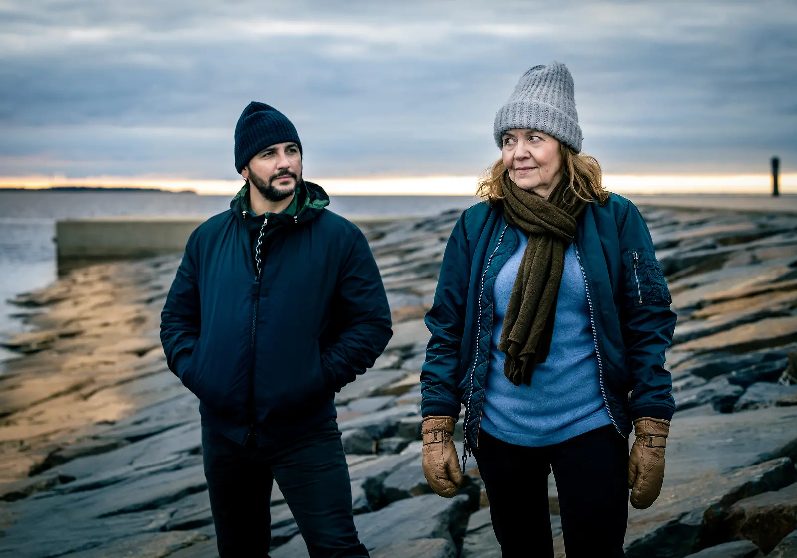 Työkaverit ja vähän enemmänkin: espanjalainen Andrés (Fran Perea) & suomalainen Hilkka (Riitta Havukainen) Paratiisi tv-sarjassa. Kuva: Tiia Öhman / ReelMedia / Yle