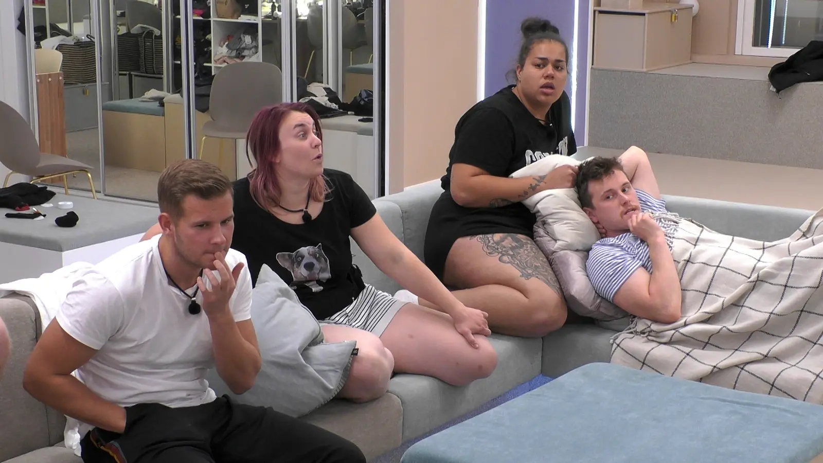 Big Brother -ihmettelyissä Lasse, Sanni, Melody ja Pekka. Kuva: Nelonen