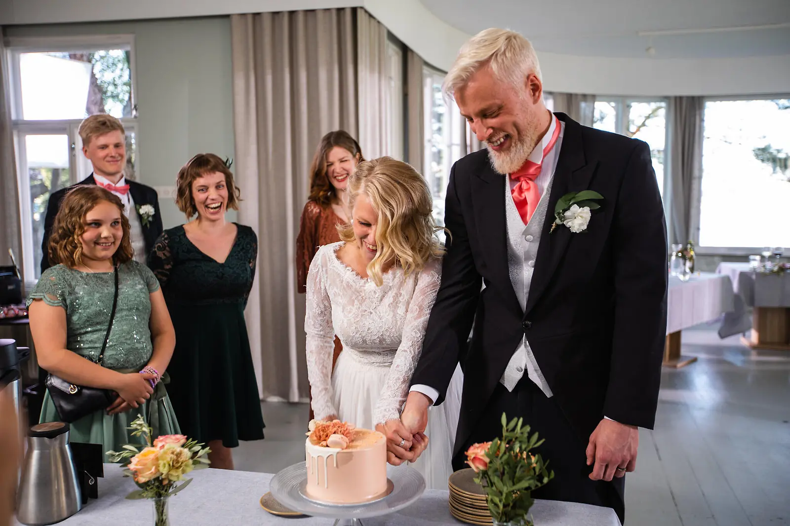 Niina ja Lari perinteisessä hääkakun leikkauksessa. Kuva: MTV3