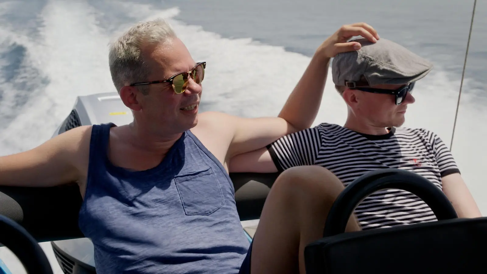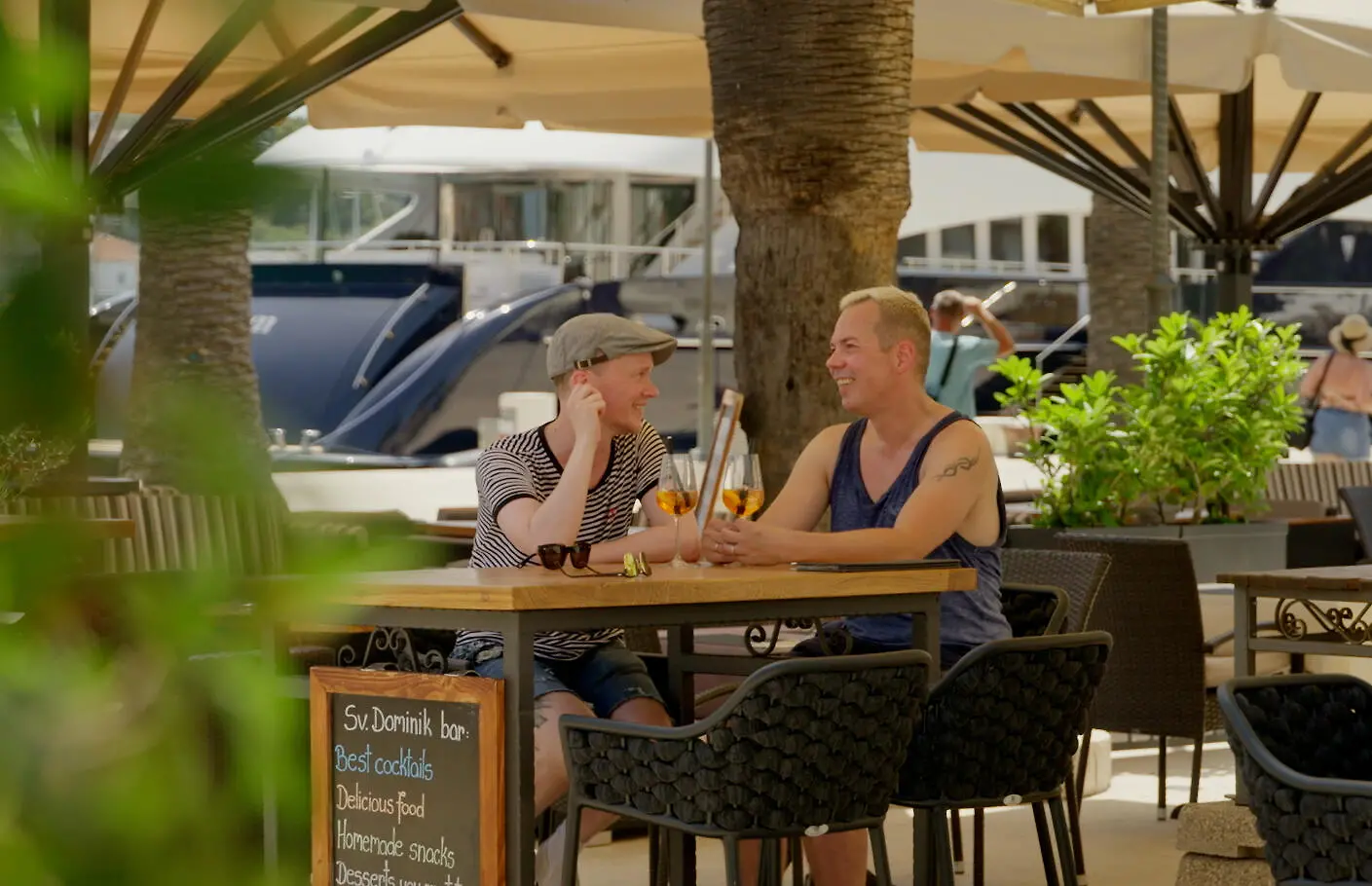 Janne ja Eino lasillisella hyvissä fiiliksissä häämatkalla Kroatian lämmössä. Kuva: MTV3