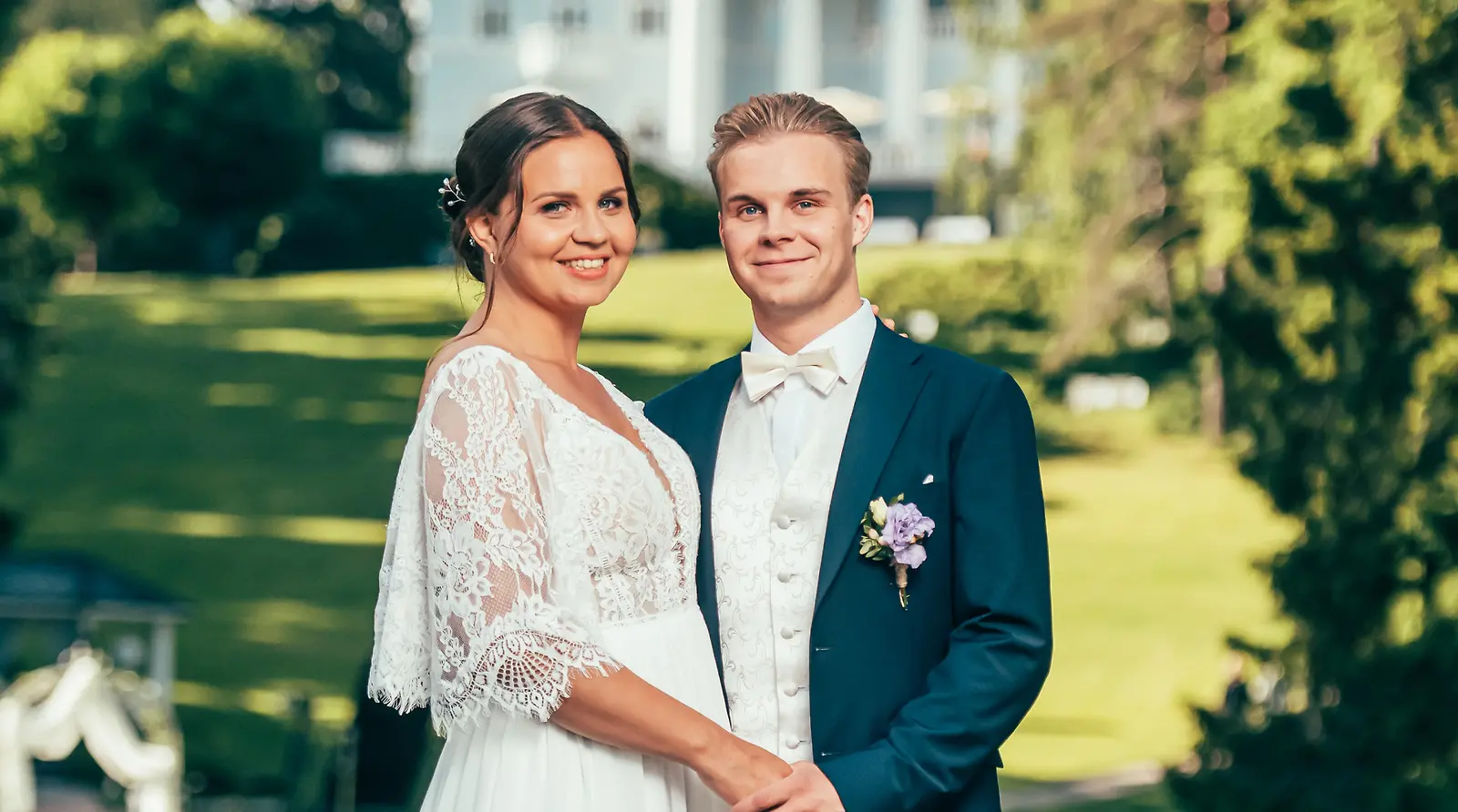 Emma ja Jape kohtasivat ensimmäistä kertaa alttarilla juhlavieraiden edessä. Kuva: MTV3