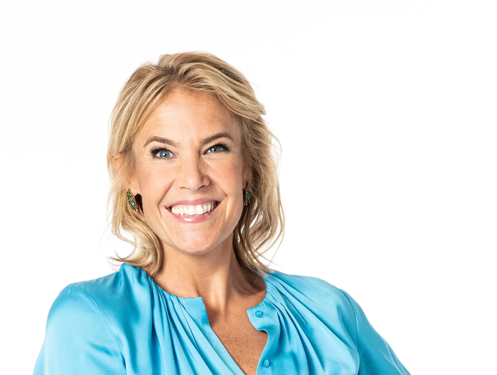 Ella Kanninen, 48, on suositun Puoli seitsemän ja Ellan matkassa -ohjelmien juontaja. Kuva: Yle