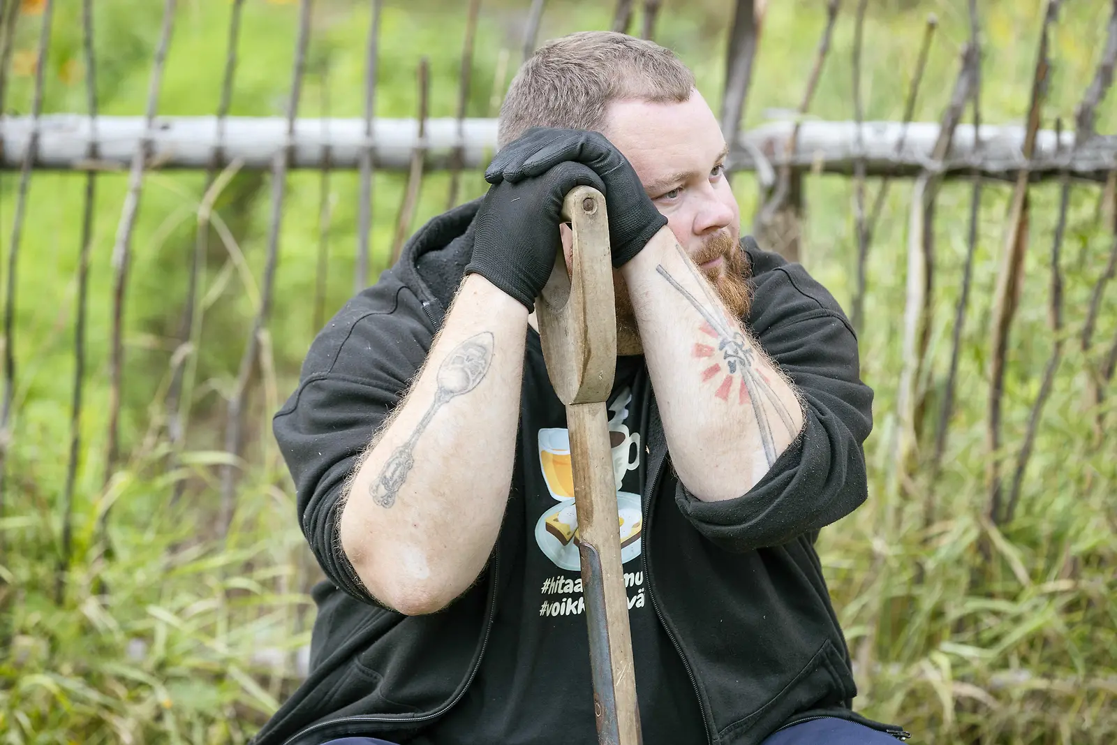 Akseli Herlevi luovalla tauolla ulkohommissa. Kuva Alpertti Rieskjärvi, Nelonen