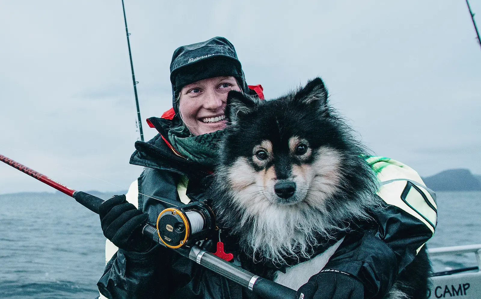 Emilia Laitinen kokeilee syvänmerenkalastusta Mörö-koiransa kanssa. Kuva: Eemeli Hepola / NTRNZ media Oy / Yle Kuvapalvelu