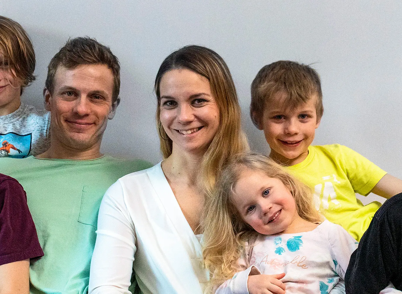 Konsta ja Aami Hietanen lapsineen olivat mukana Akuutti-ohjelmassa, joka on nähtävissä Yle Areenassa. Kuva: Yle