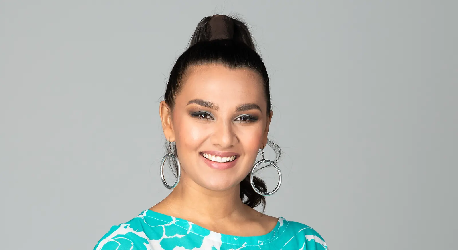 Susani Mahadura on Puoliseiskan lisäksi tuttu mm. Yle Puheen Mahadura & Özberkan -ohjelmasta ja tv:ssä hän on juontanut mm. Verta, hikeä ja t-paitoja. Kuva: Yle Kuvapalvelu