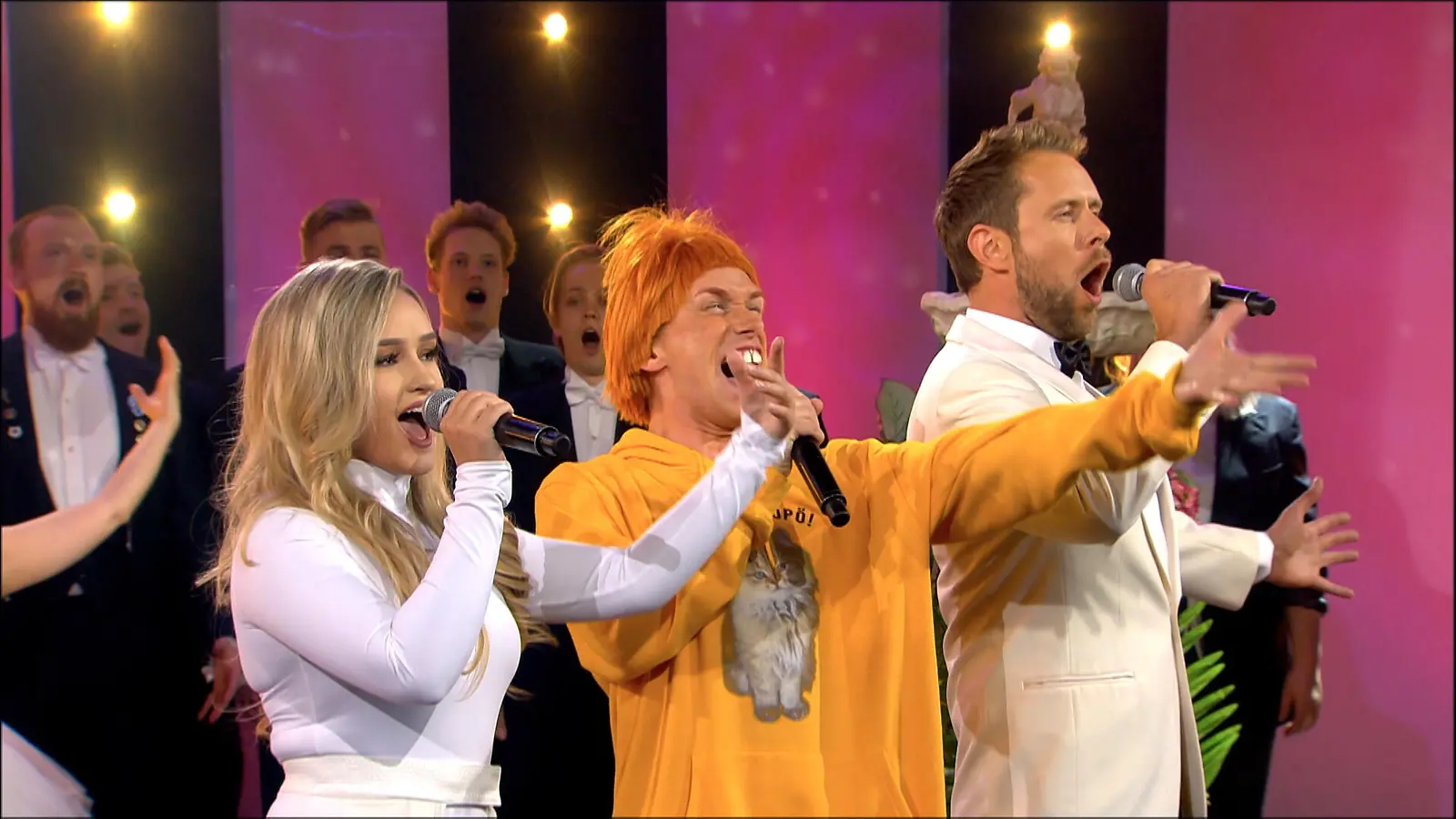 Nöpö-Felix esintyy Valtteri Torikan ja Nelli Matulan kanssa. Kuva: MTV3