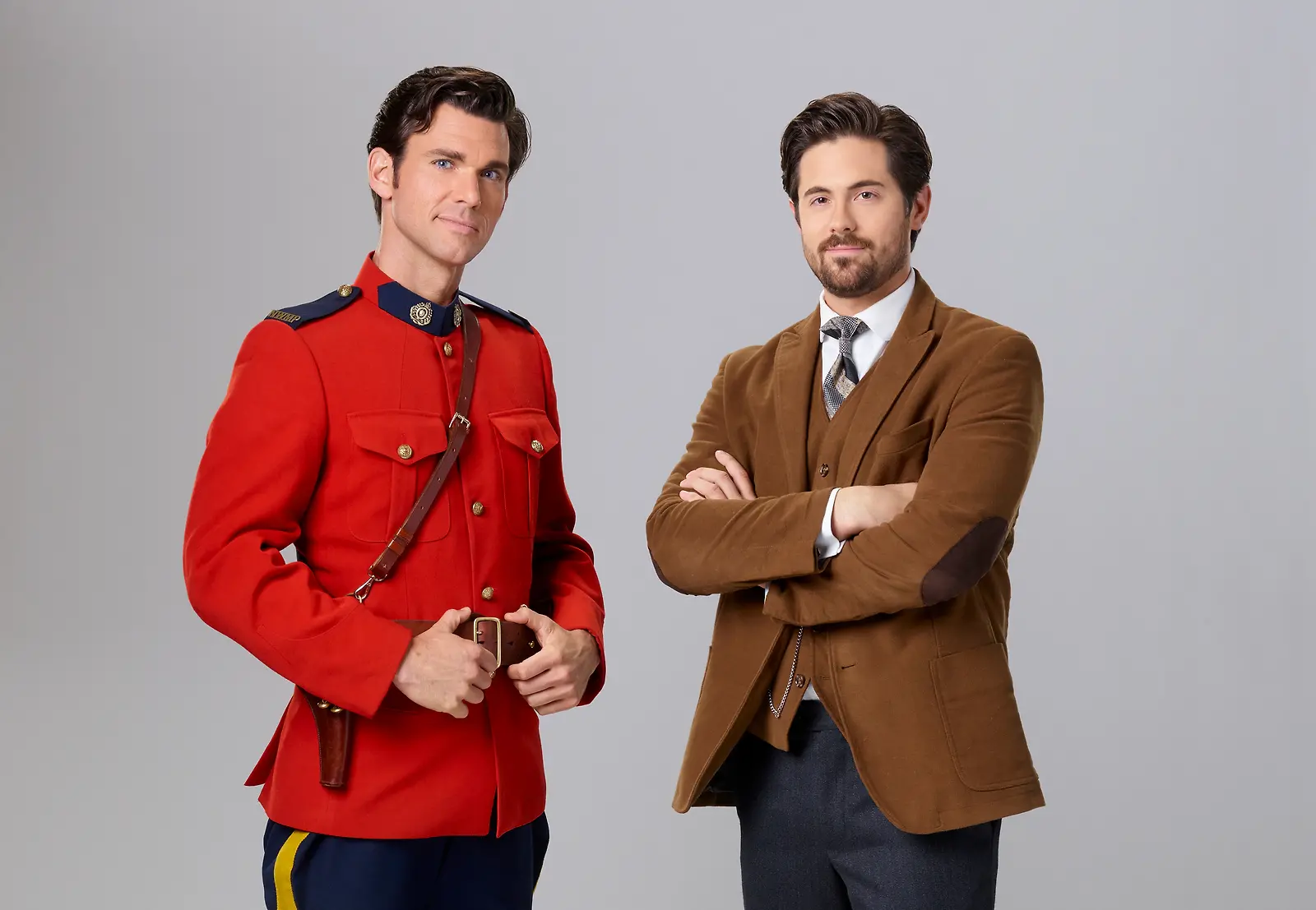 Kuvassa etualalla: Lucas Bouchard (Chris McNally), Elizabeth Thatcher Thornton (Erin Krakow) ja Nathan Grant (Kevin McGarry). Crown Media/Yle Yle Kuvapalvelu