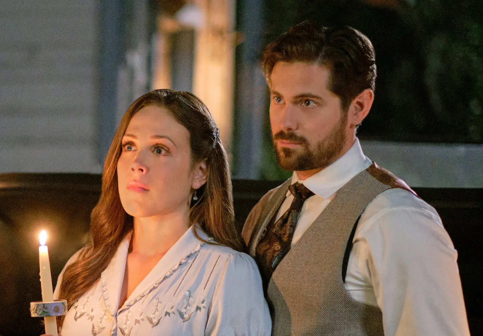 Elizabeth Thatcher Thornton (Erin Krakow) ja Lucas Bouchard (Chris McNally). Kuva: Believe Pictures / Hallmark / Yle