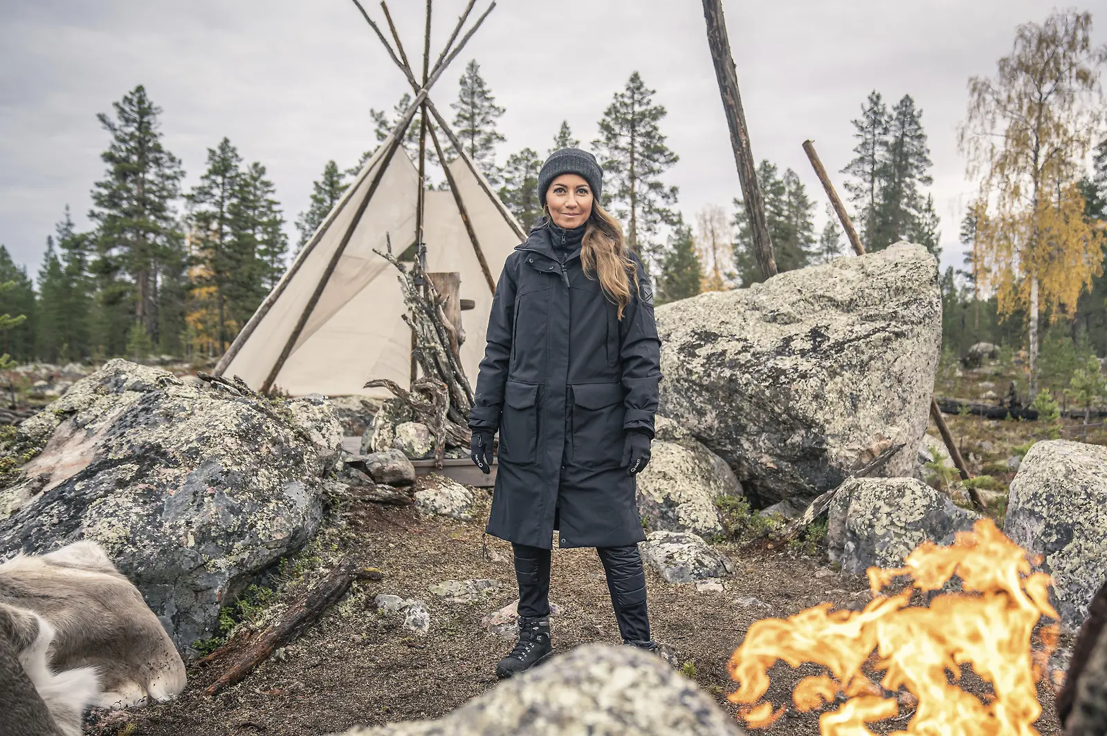 Jaana Pelkonen Lapissa Suuri seikkailu -kuvauksissa. Kuva: Nelonen