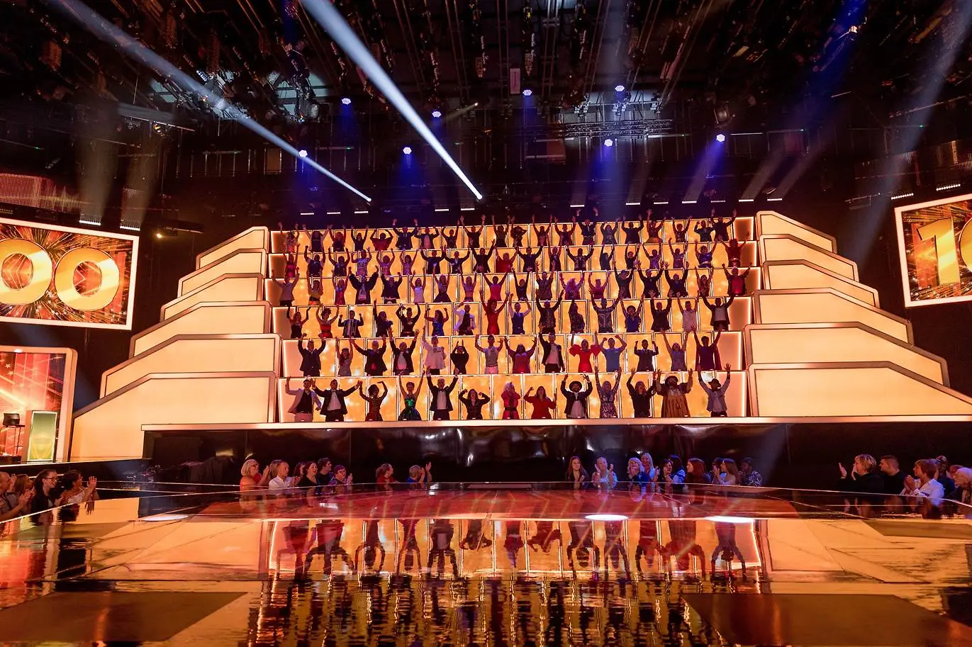 All Together Now Suomi on näyttävä musiikkiviihdeohjelma, jonka keskiössä nähdään iso, 100 hengen tuomaristo. "Sataseen" kuuluu kotimaisia musiikkialan ammattilaisia; laulajia, räppäreitä, oopperadiivoja, säveltäjiä, musiikkituottajia ja iskelmätähtiä. Kuva: Nelonen