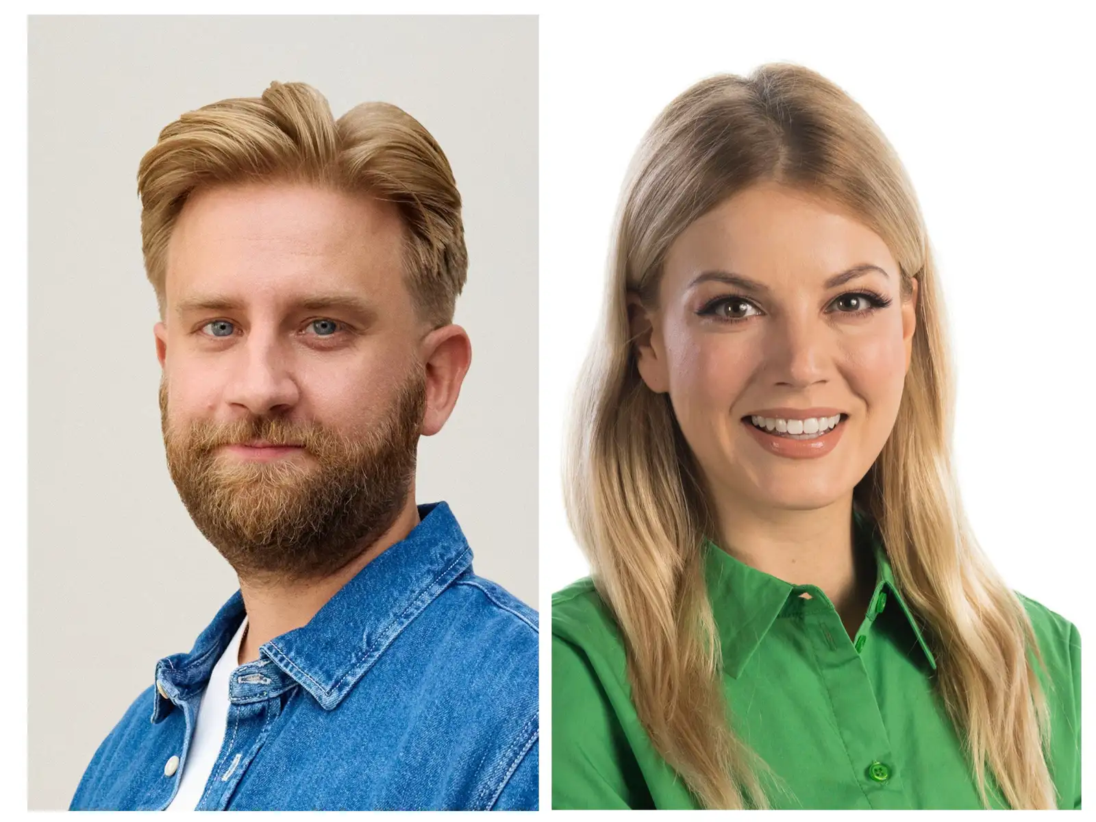 Joel Harkimo ja Janni Hussi. Joelin kuva Iholla-sarjasta MTV3, Jannin kuva Koti koiralle sarjasta, Antti Mikkola, Nelonen, kollaasi photocollage