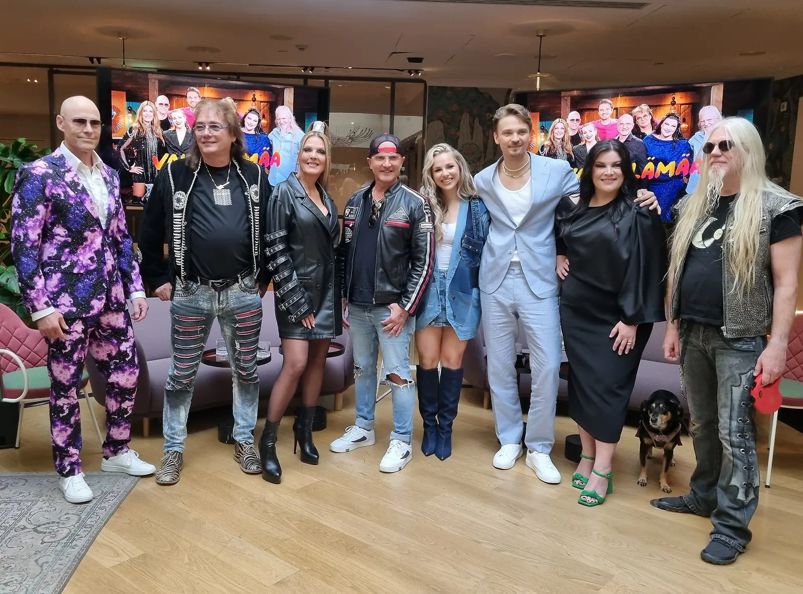 Vain elämää -artistit v. 2024: Jussi Rainio, Costello Hautamäki, Eini, Waldo, Ilta, Roope Salminen, Hanna Pakarinen ja Marko Hietala. Kuva: K. Kurki