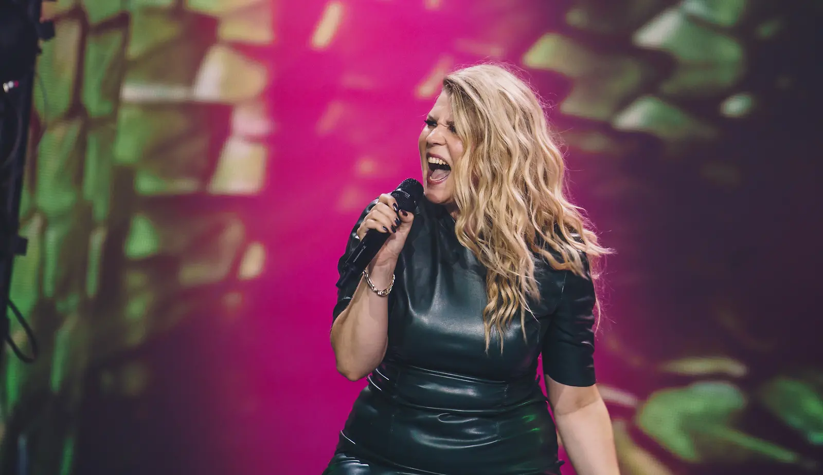 Adele-faniksi tunnustautuva Katri Ylander pistää itsensä likoon Tähdet, tähdet 2020 -kisassa. Kuva: K. Kurki