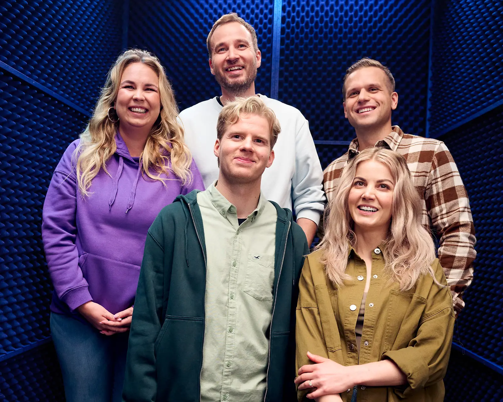 Uudistuneessa Aamulypsyssä ovat mukana Tinni Wikström, Juuso Mäkilähde, Hovimuusikko Ilkka sekä vanhat tutut Tuukka Ritokoski ja Janni Hussi. Kuva: Petri Aho/Nelonen