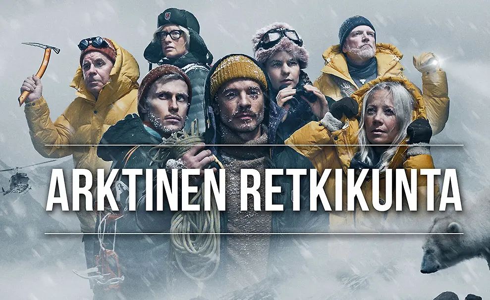 Arktisella retkellä mukaan ovat uskaltautuneet Markku 'Mato' Valtonen, Katja Ståhl, Ina Mikkola, Roni Back, Sauli Koskinen ja Kaisa Mäkäräinen. Porukan johtajana toimii Patrick 'Pata' Degerman. Kuva: discovery+, TV5