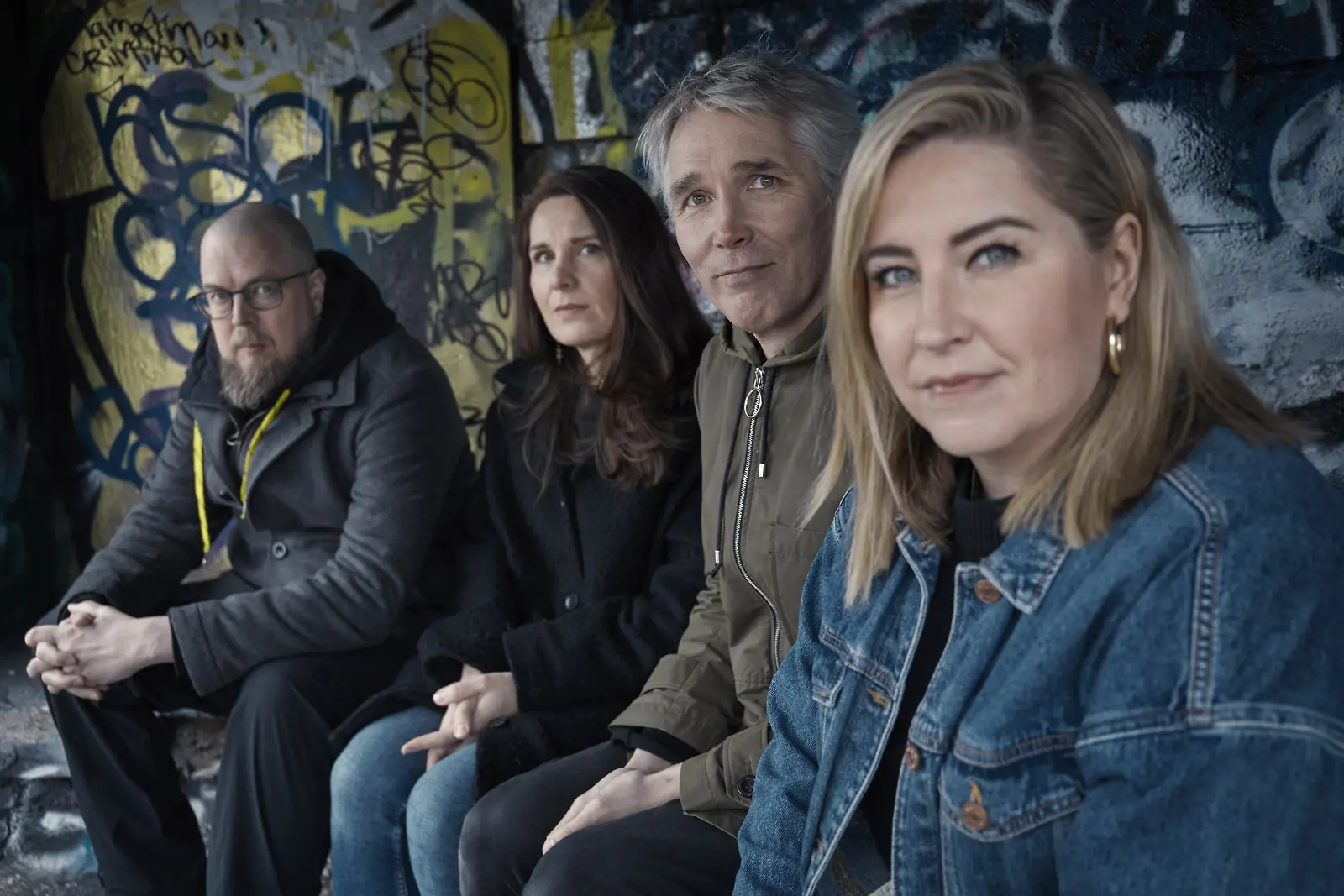 Ohjelman juontaja Jenni Pääskysaari sekä Tuomas Kyrö, Pirjo Heikkilä ja Miika Nousiainen. Kuva: MTV3