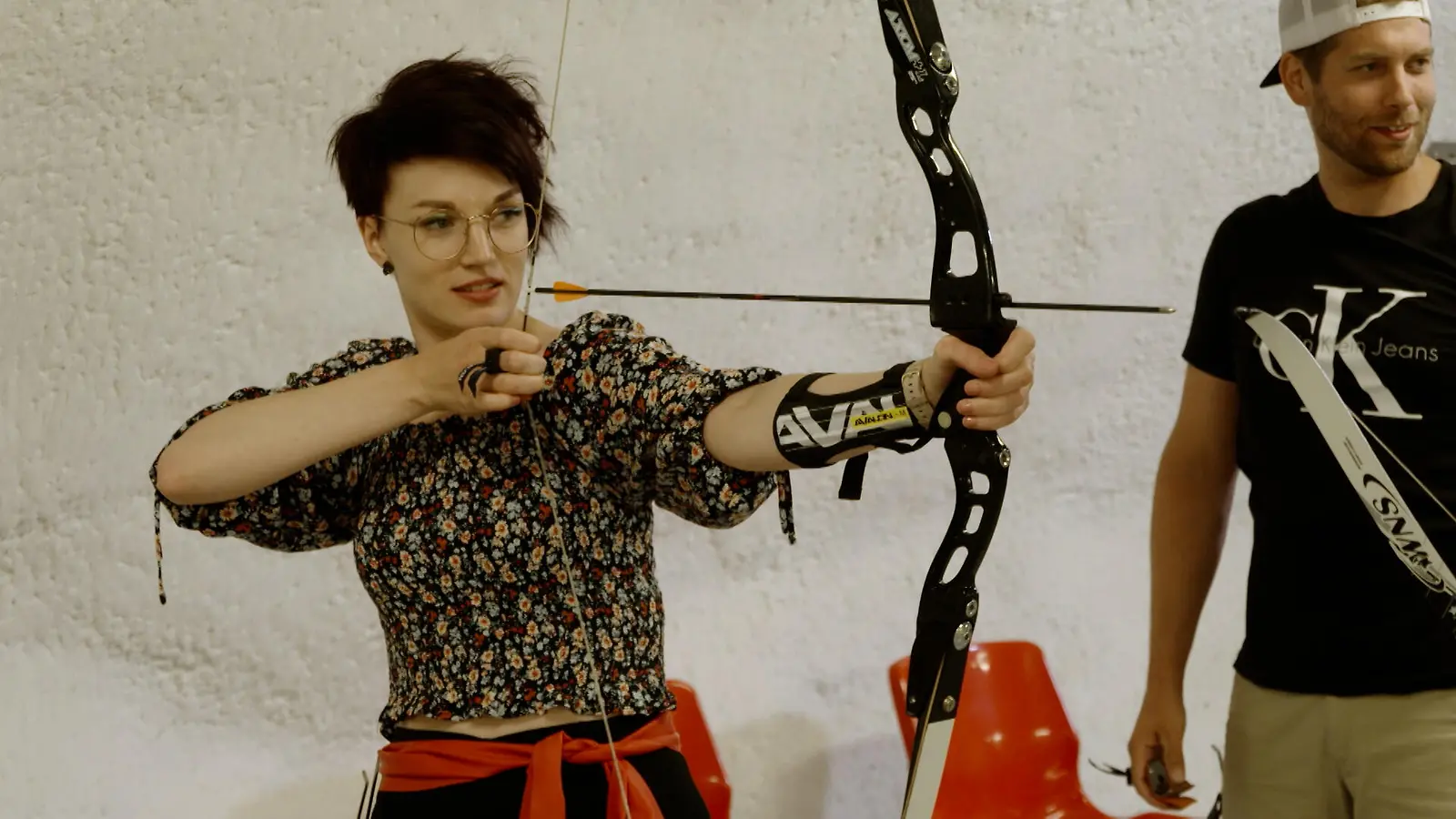 Vera ja Rene menivät jousiampumaan yhteisenä päivänään. Tunnelma oli leppoisa. Kuva: MTV3