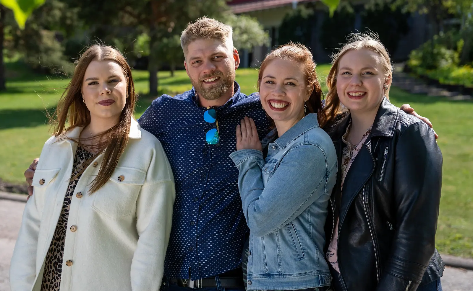 Maajussi-Sami ja morsioehdokkaat, vasemmalta Noora, Elina ja Salla. Kuva: MTV3