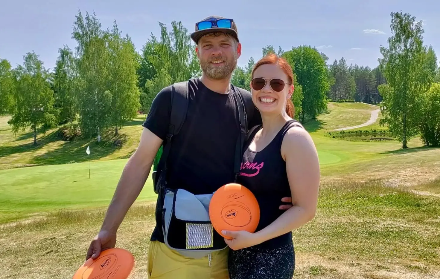 Maajussille morsian -treffeillä Sami vei Elina-morsioehdokkaan frisbeegolffaamaan. Kuva: MTV3