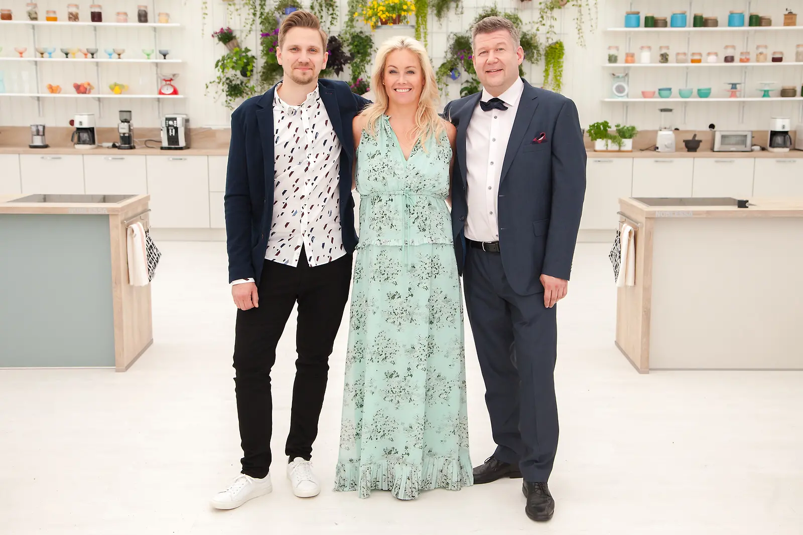 Anne Kukkohovi juontaa - parivaljakko Markus Hurskainen (vas.) ja Mika Parviainen (oik.) tuomaroi. Kuva: MTV3.
