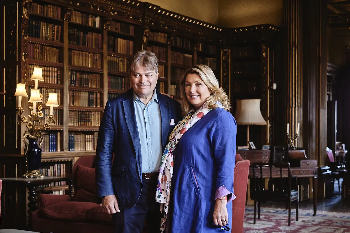 Carnarvonin kahdeksas jaarli ja kreivitär Highcleren linnan edessä. Kuva: CHRISTOPHER L PROCTOR / Silverlining Rights Limited / Yle