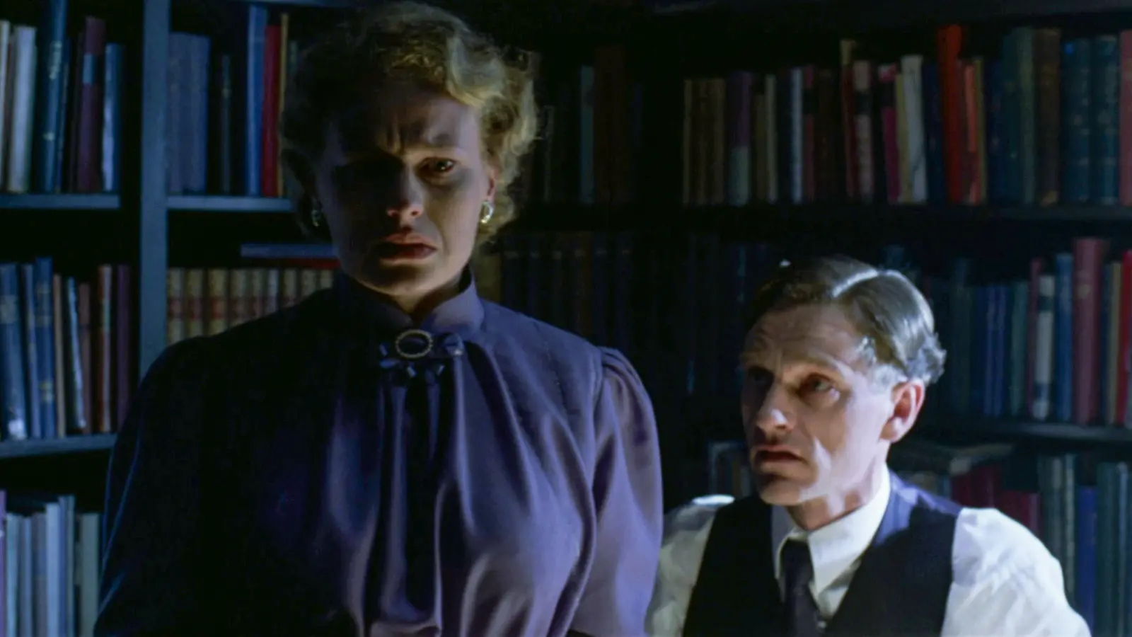 Elisabeth Saarinen (Päivi Akonpelto) ja Tauno Saarinen (Ville Virtanen) kipuilevat porvarillisessa avioliittodraamassa. Kuva: Yle Kuvapalvelu.