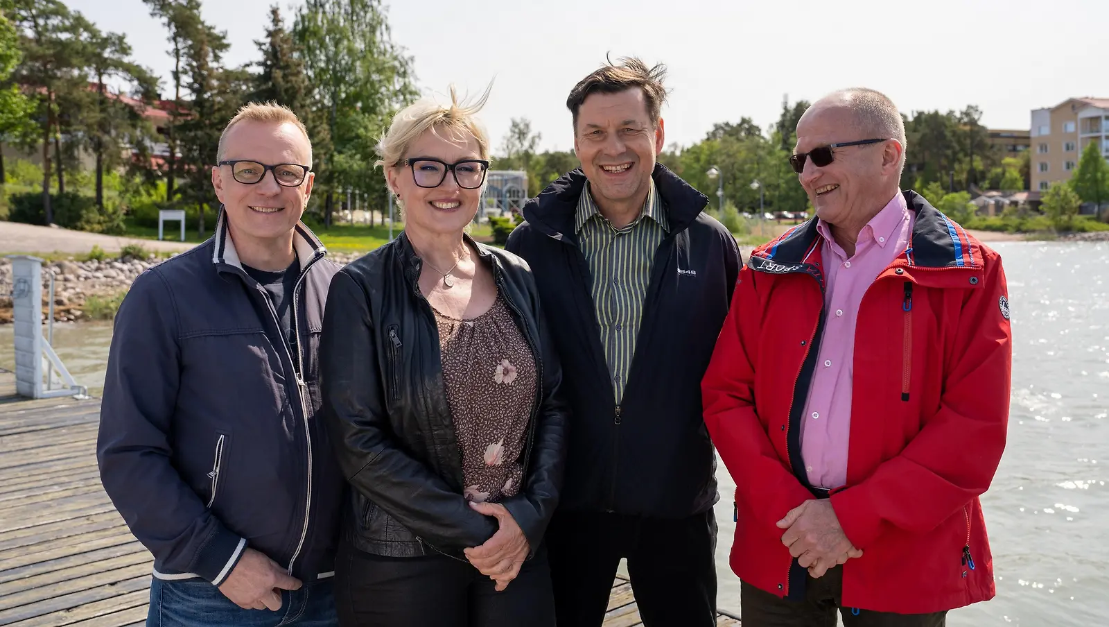Maajussi-Tarja sulhoehdokkaiden ympäröimänä, vasemmalta Rami, Juha ja Ismo. Kuva: MTV3