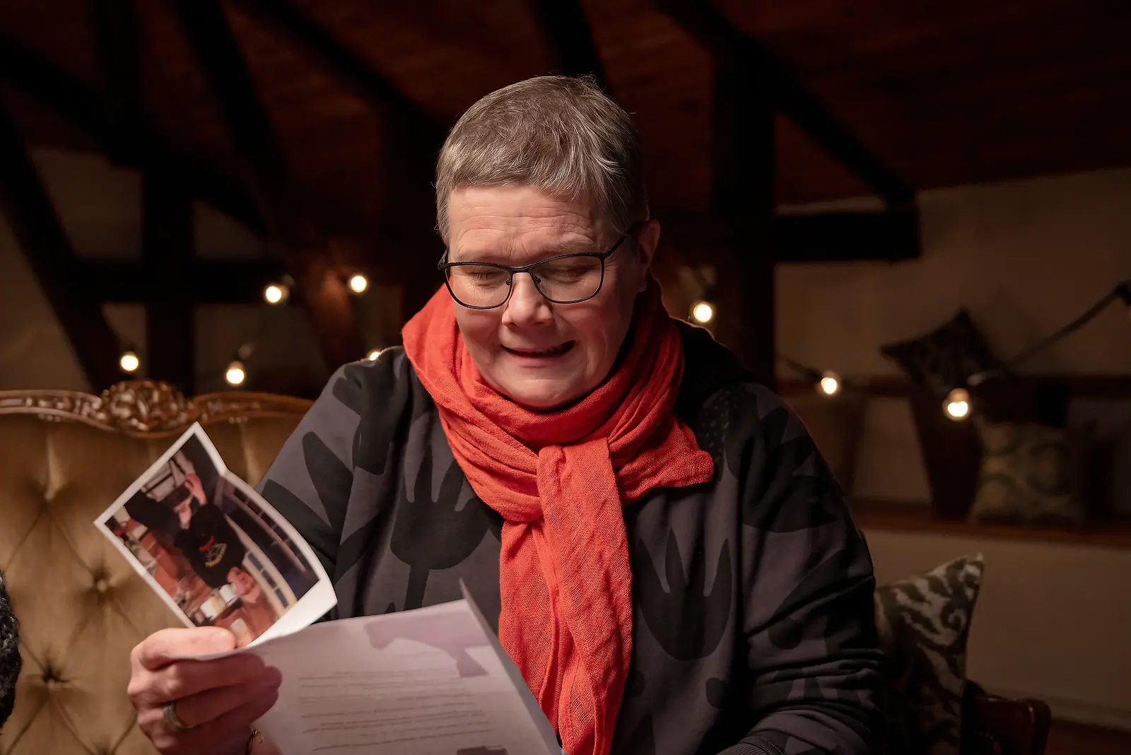 Ann lukemassa saamiaan kirjeitä Maajussille morsian maailmalla -ohjelmassa. Kuva: MTV3