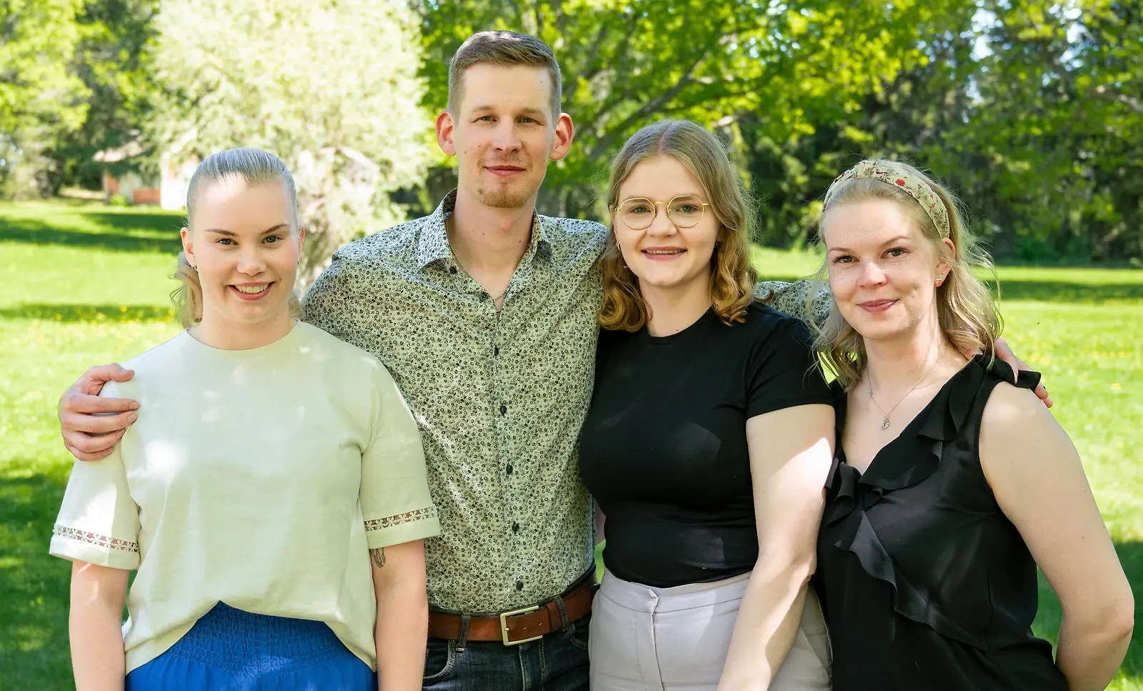Heini, Mira ja Anni maajussi-Samin kainalossa Maajussille morsian -sarjassa. Kuva: MTV3