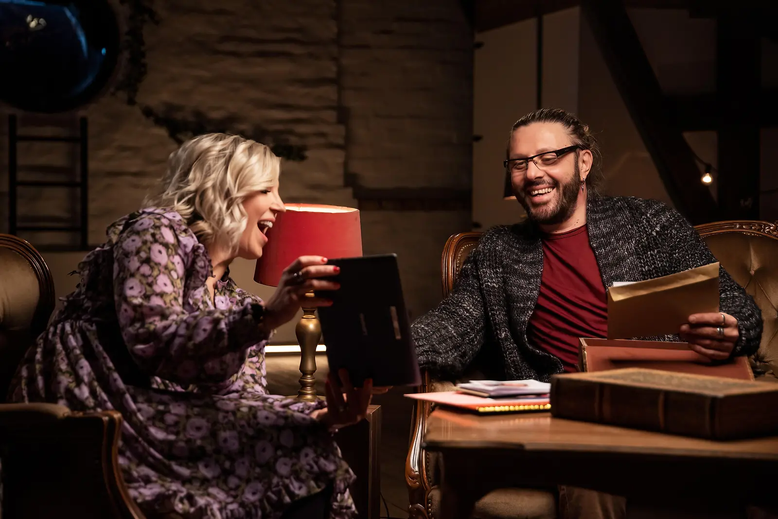 Sinan ja Vappu Pimiä miehelle tulleiden kirjeiden ja videoviestien kimpussa. Kuva: MTV3