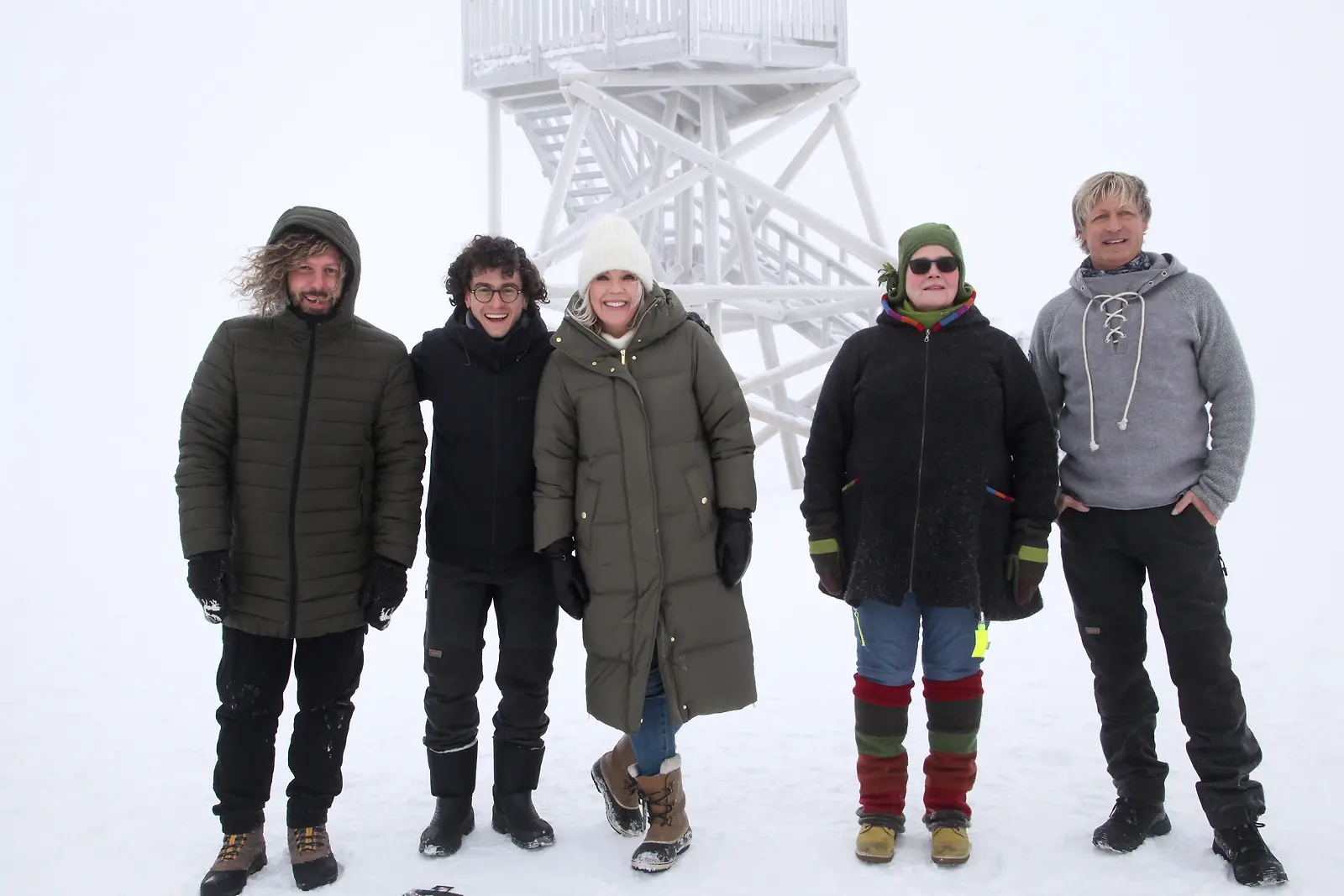 Ulkomaan maajussit pääsivät varsin eksoottisiin olosuhteisiin Lapissa, keskellä juontaja Vappu Pimiä. Kuva: MTV3