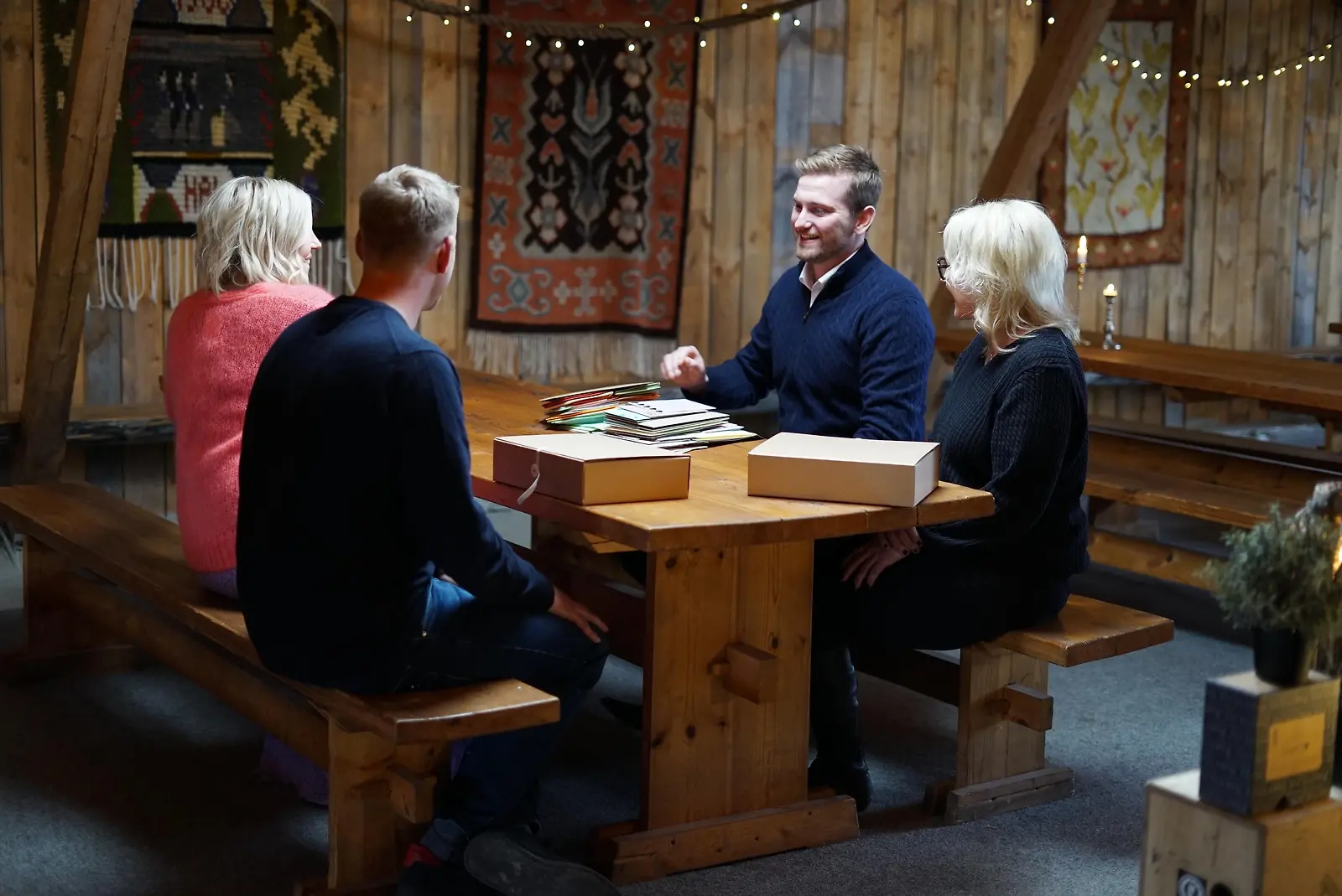 Maajussi-Ville sai kaksi laatikollista kirjeitä, tässä muiden maajussien ja Vappu Pimiän kanssa. Kuva: MTV3