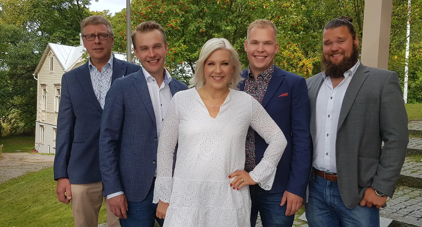 Maajussit ja ohjelman juontaja Vappu Pimiä. Kuva: K. Kurki