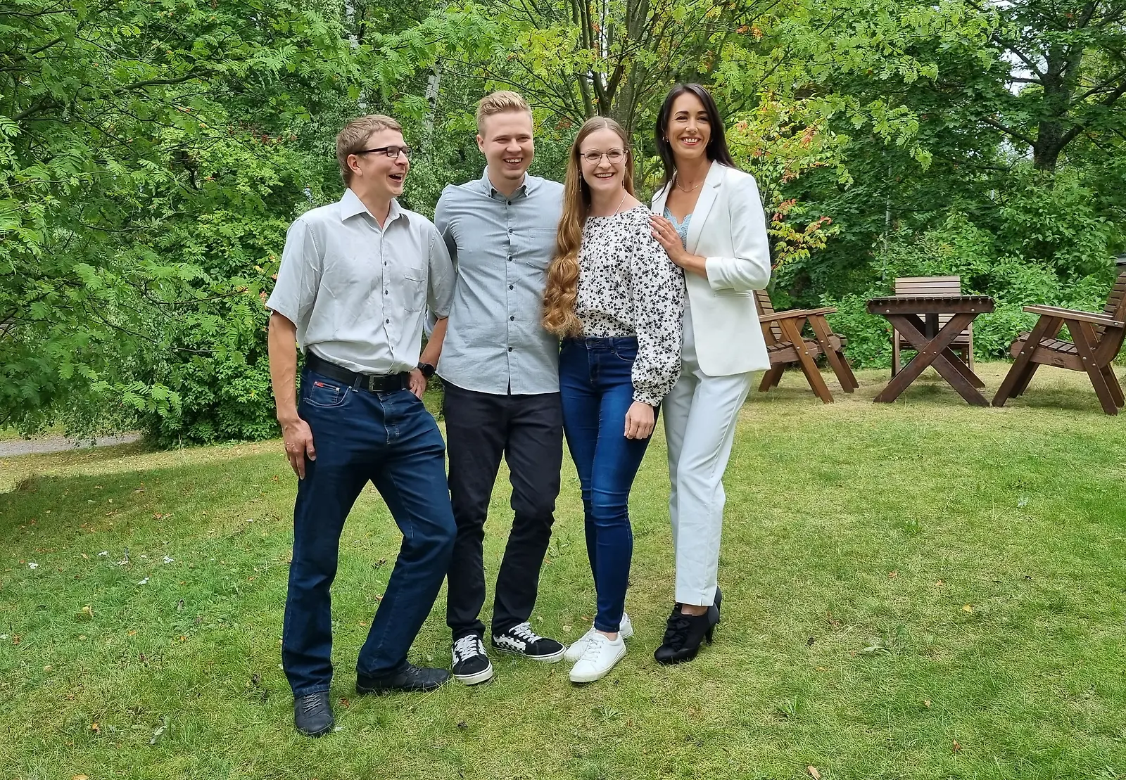 Arho, Joonas, Anna-Reetta ja Victoria etsivät rakkautta Maajussille morsian -ohjelmassa. Kuva: K. Kurki