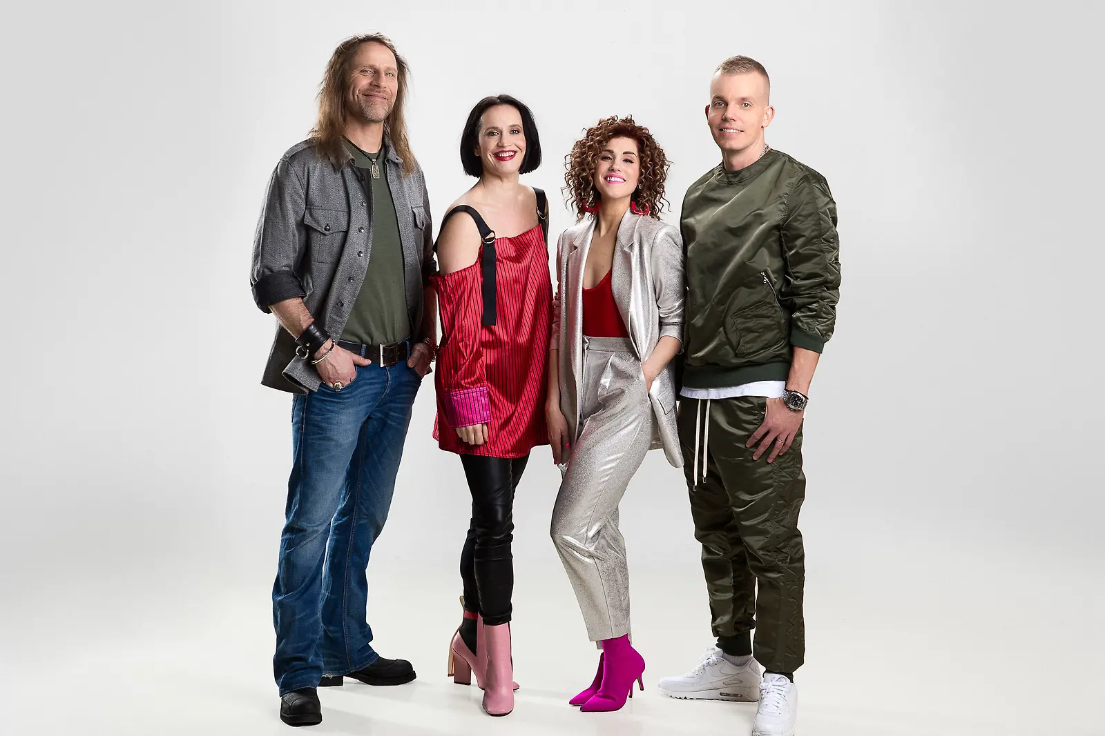 Jannika B oli mukana Idols-tuomarina v. 2018 yhdessä Jone Nikulan, Maija Vilkkumaan ja Elastisen kanssa. Kuva: Nelonen