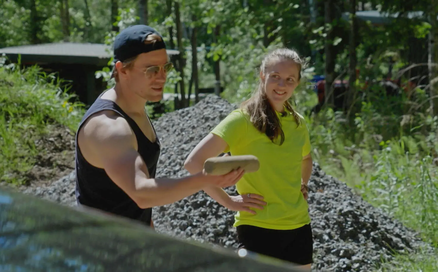 Salla ja Lauri tutustuivat toisiinsa ja myös toistensa perheisiin. Tässä mölkkykisailua juhannuksena Laurin mökillä. Kuva: MTV3