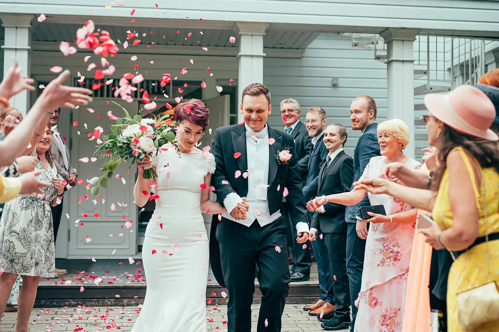 Matti ja Vera hääpäivänään häävieraiden ympäröimänä. Kuva: MTV3