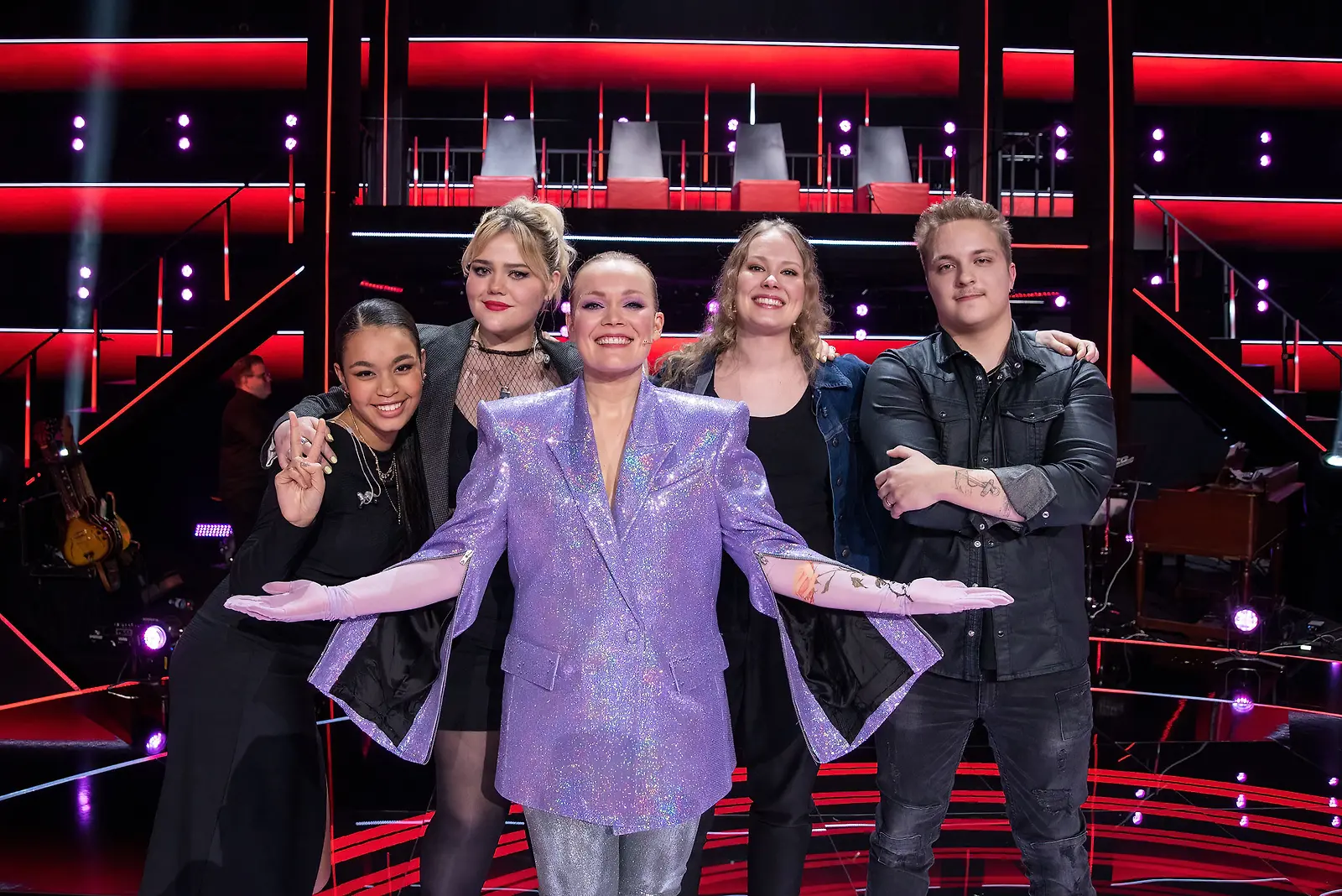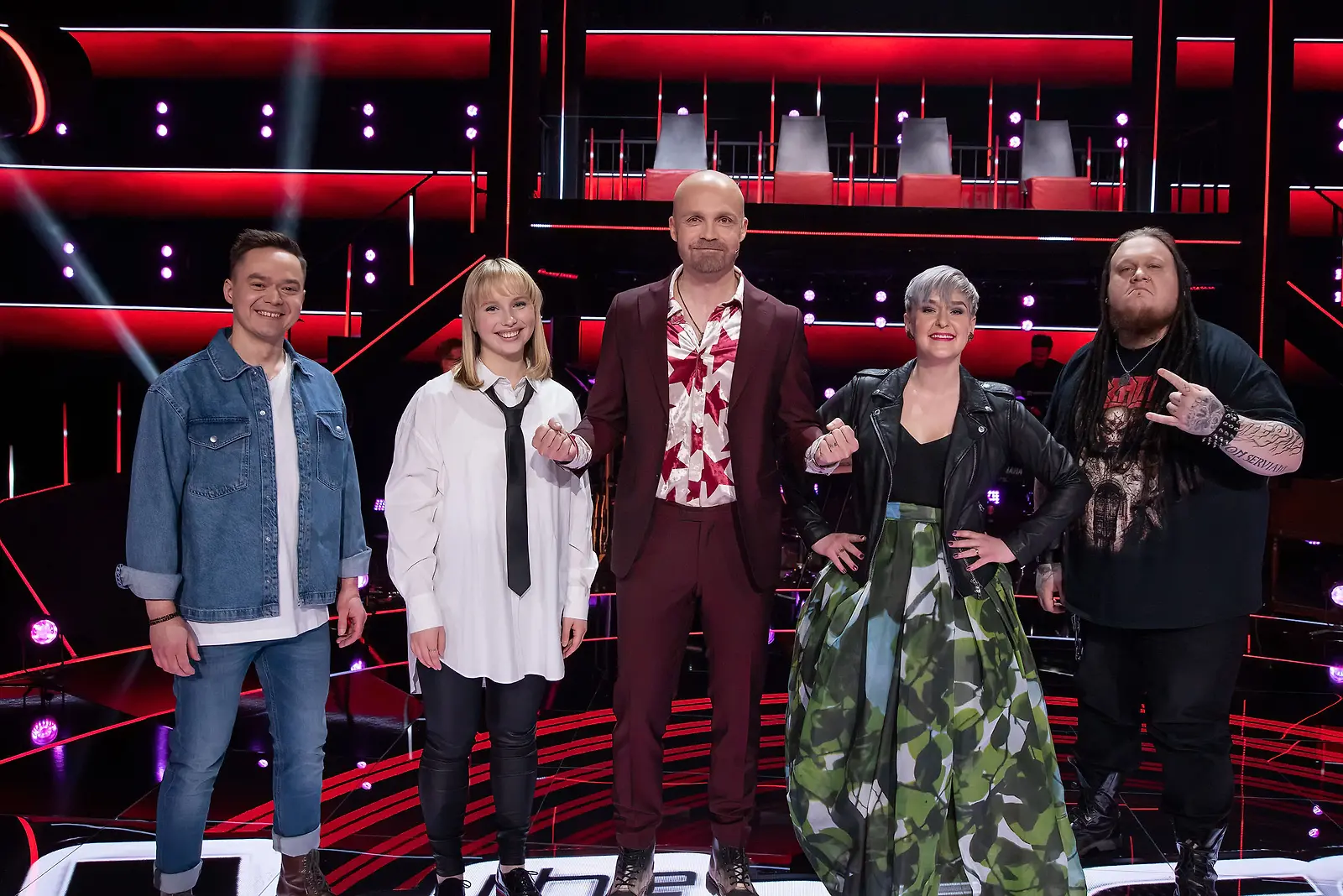 Anna Puu, Juha Tapio, Sipe Santapukki, Toni Wirtanen ja Maija Vilkkumaa. Kuva: Nelonen
