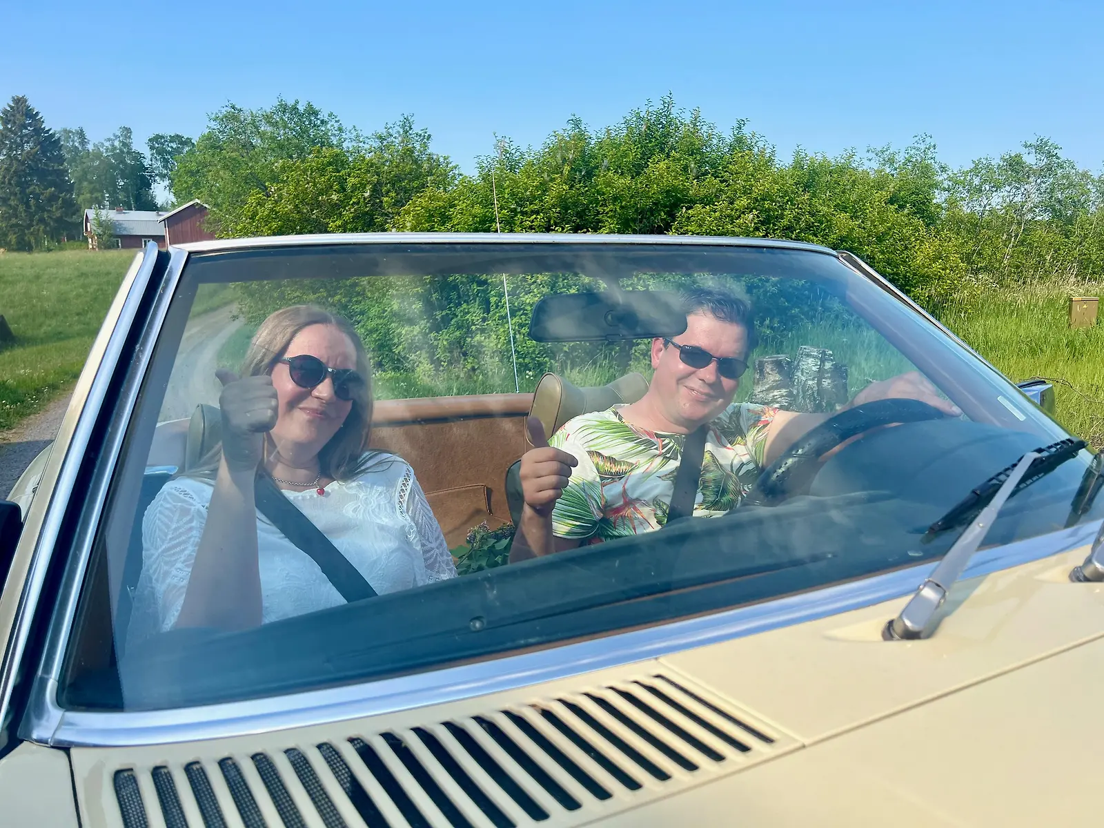 Marjo ja Kalle jakavat kiinnostuksen vanhoihin autoihin, tässä Kallen vintage-Mersua ulkoiluttamassa. Kuva: MTV3