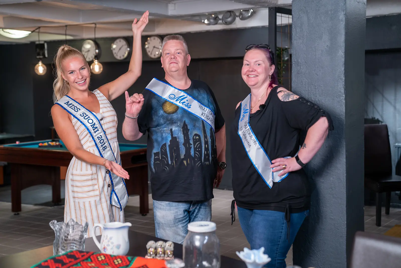 Missit rivissä! Aki ja Heli tavaranhakumatkalla Helsingissä, jossa he tapasivat Miss Suomen, Alina Voronkovan. Kuva: Nelonen Media