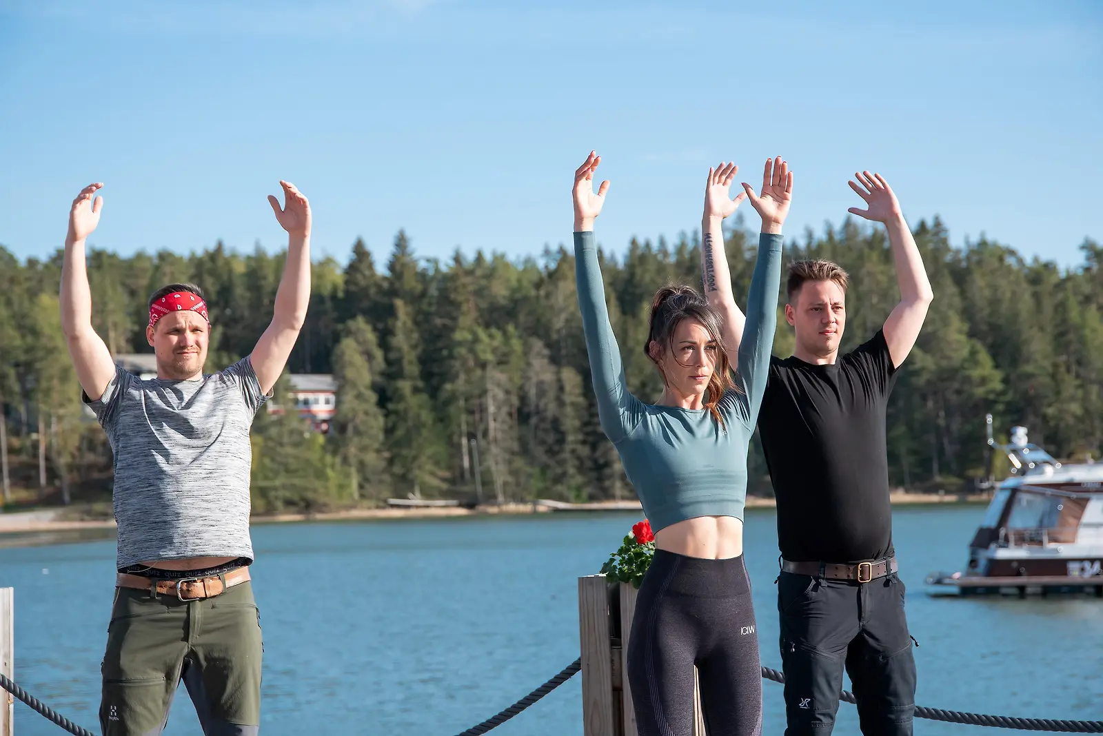 Sorjavartinen Victoria pisti sulhoehdokkaat jumppaamaan ryhmätreffeillä. Kuvassa Victor, Victoria ja Aleksi. Kuva: MTV3
