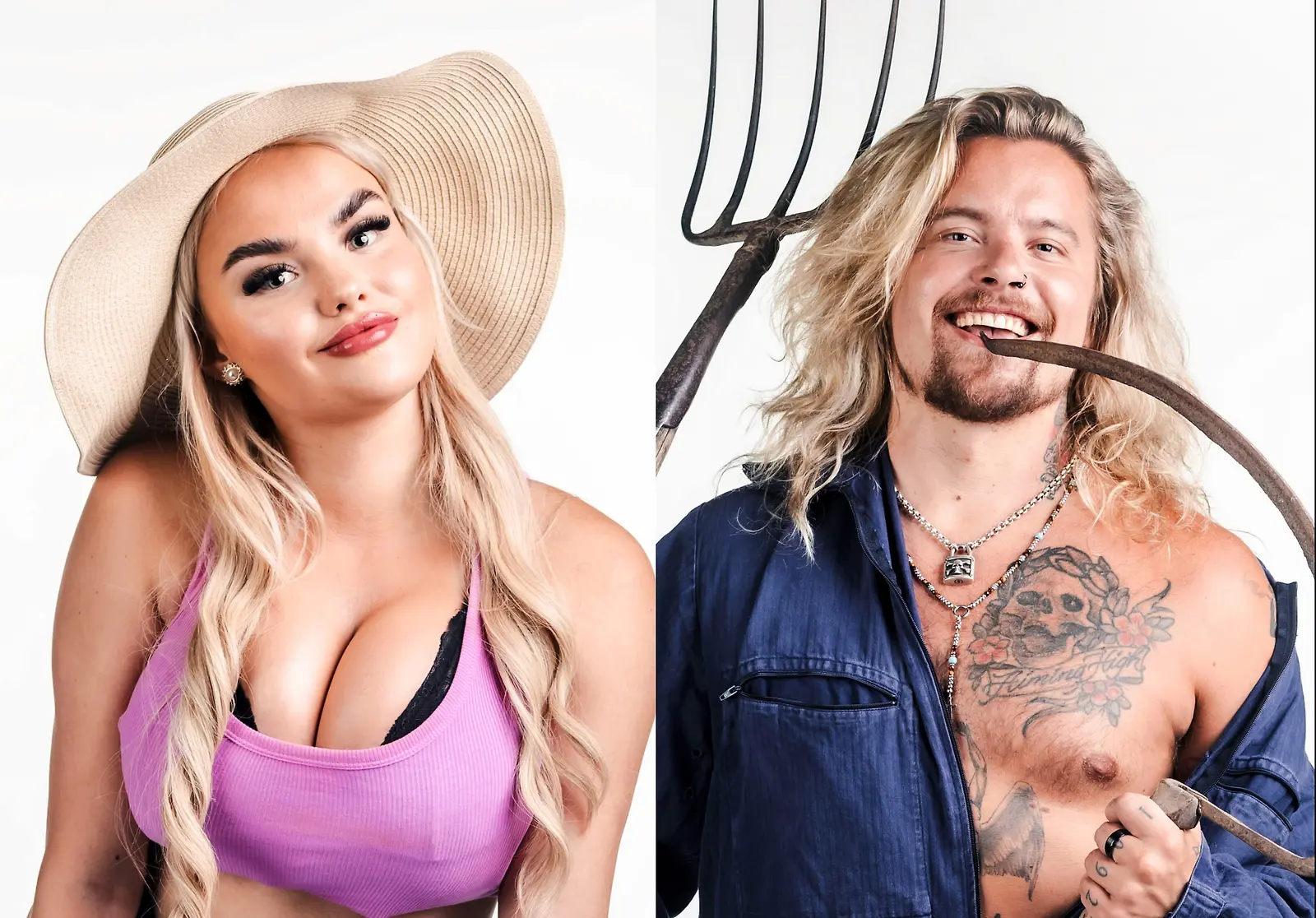 Iida Vainio ja Archie Cruz kuvattuna Farmi Suomi -lehdistömateriaalissa. Kuvat: Nelonen, kollaasi photocollage