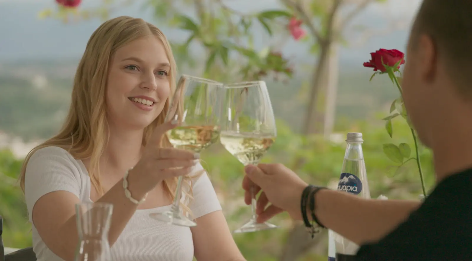 Emma ja Sami kippistelevät treffeillä. Kuva: MTV3