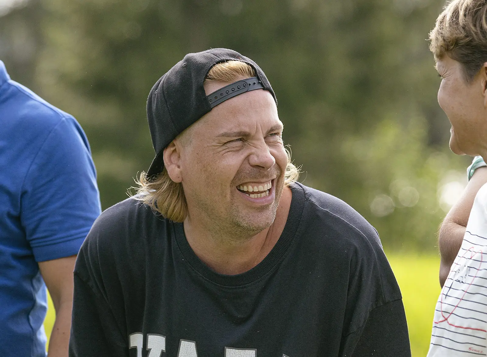 Tuumaustauko viljapellolla, asusteena silmälasit ja lippalakki väärinpäin. Kuva Alpertti Rieskjärvi, Nelonen
